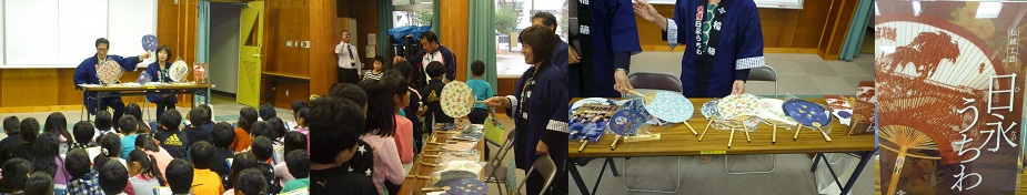 総合「そうだったのか!リサーチ日永」で稲藤さんに日永うちわのお話をしてもらいました。300年もの歴史のある日永うちわをたくさん見せてもらいながら、特徴や種類など詳しく説明してもらいました。子どもたちも目を輝かせながらたくさんメモを取っていました。