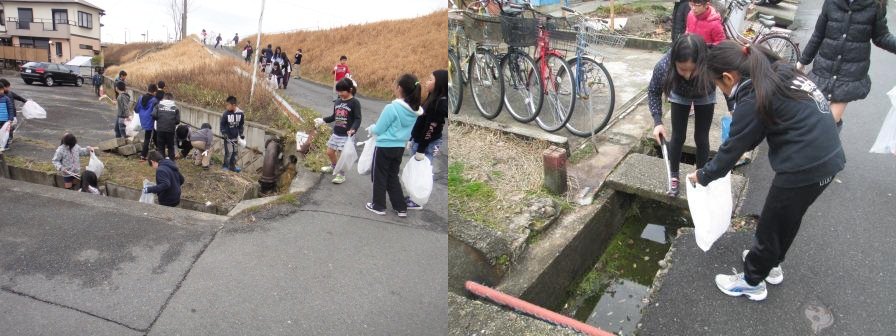 この写真は、南日永駅周辺や公園を掃除した時の様子です。