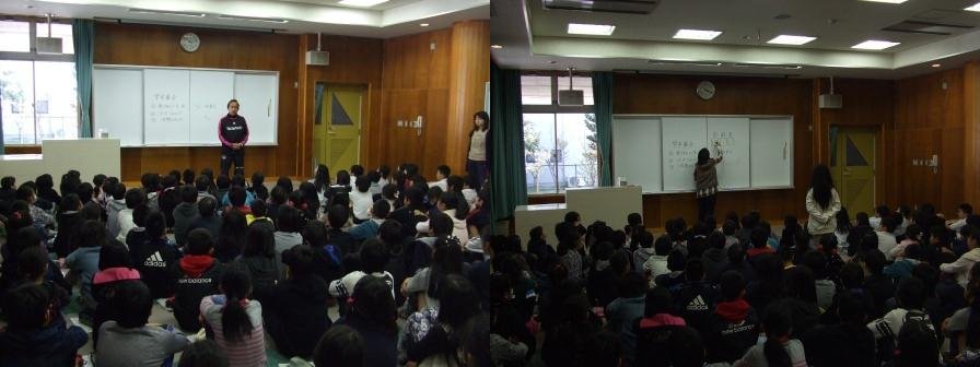 23日(月)の2限目に4年生最後の学年集会を行いました。
