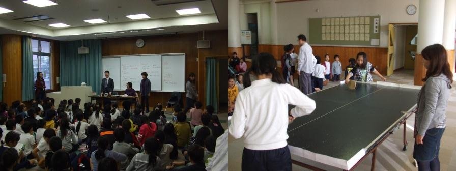4年生では、「だれもが関わり合えるように」というテーマで福祉について学習を進めています。今日は目の不自由なご夫妻をゲストティーチャーにお招きして、目が不自由であることに対する疑問等を質問し、答えていただきました。その中で、「困っているときは支えてほしい」という言葉が印象に残りました。普段使用している音声付目覚まし時計、携帯電話、拡大鏡等の説明もしていただきました。最後に、音が鳴るピンポン球を転がして打ち合う卓球を体験しました。