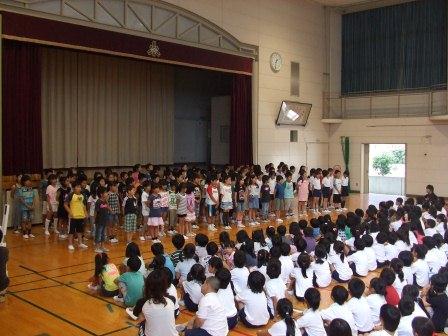 5限目に学校集会があり、各学年が順番に発表しました。4年生は、@水を大切にするAゴミを分別するBゴミを減らす努力をする。という社会見学で学んだ主な三点を学校全体に報告しました。