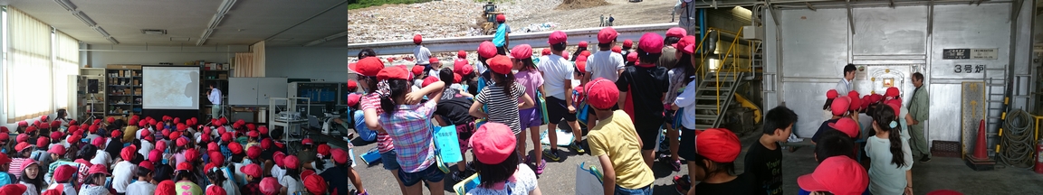 心配された天気も子どもたちの願いが通じて、雨に降られることなく予定通り見学を行うことができました。日永浄化センターでは、下水がきれいな水になる仕組みを見学しました。南部埋立処分場では、燃えないゴミを埋め立てる様子を見学しました。最後の北部清掃工場では、ゴミ収集車からゴミピットに入れる様子や焼却している様子を見学しました。