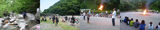 天気にも恵まれ,子どもたちは元気いっぱい,沢登りやキャンプファイヤーなどの活動を楽しみました。