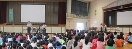 学校集会がありました。5年生は,自然教室の思い出をスライドと呼びかけで発表しました。自然教室の様子を,他の学年の人にも知ってもらうことができました。
