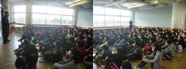学年集会を1時間目に行いました。まず,6年生に向けての心構えについて話をしました。3学期は5年生が中心とならなければならない行事があります。一人ひとりがしっかりと考えて活動していってほしいと思います。 また,学習面,生活面についての話もしました。3学期は1年間のまとめの学期です。自分の苦手な学習にも積極的に取り組んでほしいと思います。