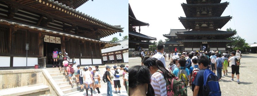 5月30日(金)社会見学で奈良に行きました。まずは法隆寺です。初めて見る歴史建造物に感動の声が聞こえてきました。