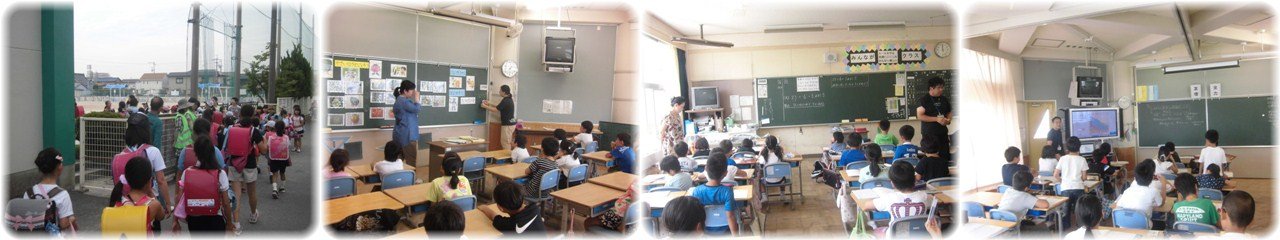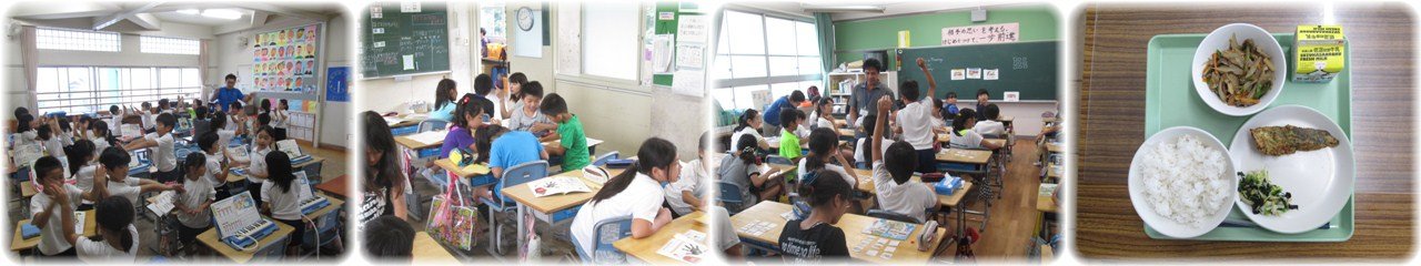 いよいよ1学期も今週で終わり。図書室で2年生が夏休みに読む本を借りていました。1人5冊、物語や図鑑などお気に入りの本を選びました。「家族に作ってあげるの」と料理の本を選んだ子もいました。また、貸出しの手続きをする指導者がバーコードを読み取りやすいように、バーコードが見えるように本をずらして重ねて机に置くなど、子どもたちの心遣いが感じられました。(1枚目)図書用の掲示板に「自由研究にチャレンジ」と題したチャートが掲示されています。「好きな教科は?」「自分は食いしん坊だと思う」といった問いに答えながら進んでいくと自由研究のテーマのヒントが得られるというものです。長い夏休み、調査や観察などにじっくり取り組んでほしいですね。(2枚目)5年生の図工。モビールが完成に近づきましたが、最後の工程に苦戦。本体に穴を開けてつり下げるための糸をつけるのですが、糸の長さや結び目がうまく合わず、なかなかバランスが取れませんでした。5年生のオープンスペースにはたくさんのモビールが風に揺れています。(3枚目)6年生の英語活動。今日のレッスンは、「Turn right」。目的地への行き方を尋ねたり言ったりする表現に慣れ親しむことがねらいです。まず、全員が目をつむって指導者の「Turn right(left)」の指示に合わせて体の向きを変える活動をしたのですが、みんなの動きがそろいません。目を開けると、前の子と目が合ってびっくりなんてことも。道案内ゲームなどをして繰り返し聞いたり言ったりすることで慣れていきました。(4枚目) |