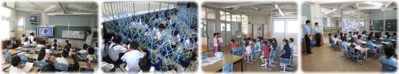 1年生の国語科で,くちばしクイズの発表を行っていました。プリントに書いたくちばしの絵を電子黒板に映し,どの鳥のくちばしかをみんなで当てる活動でした。プリントに書いたヒントを読みながらみんなで答えを考え,黒板に貼られた鳥の挿絵を見て答えを確かめました。(1枚目)1年生が5月に植えたアサガオがぐんぐん成長し,本葉もたくさん出てつるも巻いてきました。中にはすでに花が咲いている鉢もありました。子どもたちは成長の様子をじっくり観察して観察カードに書いていました。(2枚目)2年生が28日に行うなかよし集会の練習を行っていました。進行側と参加者側に分かれ,進行役の子どもがルール説明を行いました。教室の中では,クイズを出す係やくじ引きをする係の子など,役割分担をしてスタンバイしていました。(3枚目)市教育委員会指導課の学校訪問があり,各学級を回って子どもたちの学習の様子を見ていただきました。「どの学級も落ち着いて学習できている」「子どもたちの姿勢がいい」「整理整頓がきちんとできている」など,うれしい感想をいただきました。(4枚目)