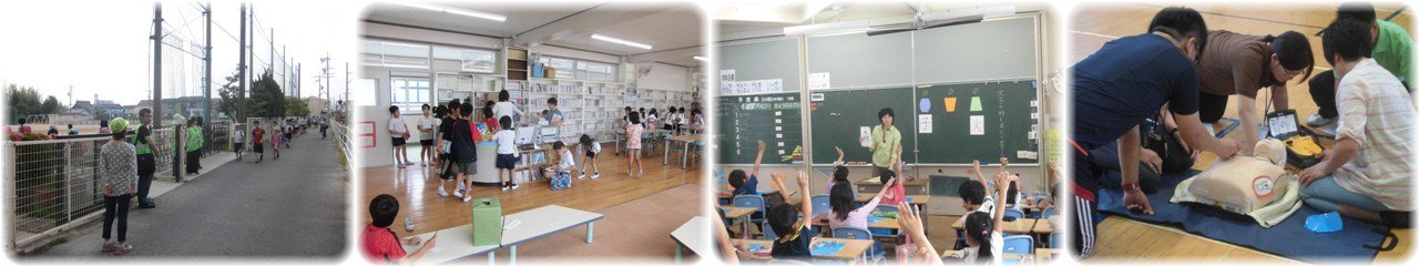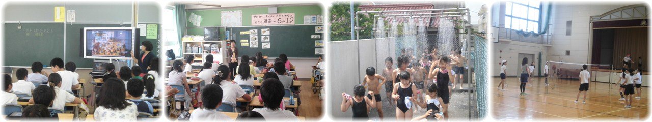 5年生で,パソコン室のノートパソコンを教室に運んでタブレットとして活用し,パソコンを使った「アートレポーターになって」という図工の学習を行いました。2人1台に割り当てられたタブレットに指導者から1枚の絵が送信されました。指導者から「何の絵でしょう?」と問いかけられ,子どもたちはタブレットを拡大したりしながら特徴を見つけていきます。「これは遊びの絵で90以上の遊びが描かれているので,見つけた遊びに○をつけ,名前をつけてルールを考えよう」と課題が出されました。子どもたちはタブレットの絵をながめながら遊びを見つけてワークシートにまとめていました。(1枚目)6年生の外国語(英語)活動です。ふだんは英語指導員と担任と2人で行っていますが,今日は担任のみで「Can you 〜?」の話型の学習を行いました。班で会話の練習をした後は,自由にペアを作ってインタビューをし,相手が「Yes I Can.」と答えれば○をもらえるというインタビュービンゴをして楽しみました。(2枚目)今日は待ちに待ったプール開きで,2年生・4年生・1年生の一部のクラスが入りました。朝から気温が上がり,絶好のプール日和でしたが,水はまだ少し冷たかったようです。シャワーを浴び,早速水かけをしたり水に潜ったり水中を歩いたりしました。(3枚目)今年クラブ決めをしてから初めてのクラブ活動でした。4〜6年生の子どもたちが13のクラブに分かれて1年間同じクラブで活動します。(4枚目) |