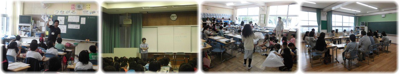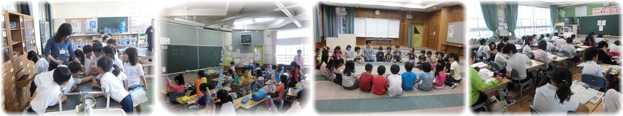 3年生の算数科は円の学習に取り組んでいます。円の中心や直径という用語を学んだ後,指導者が円が印刷されたプリントを配付しました。その円を各自が切り取ったところで,「円の中心はどこですか?」と課題が出されました。その円には中心が書いてないため,子どもたちは定規を使って長さを測ったり,円を二つに折ったりと試行錯誤しながら円の中心を見つけていました。(1枚目)4年生の「総合」で昨日に引き続き,「日永を支えてくれている人」として,西門で毎朝挨拶をしていただいている主任児童委員の方をゲストティーチャーにお招きしました。今日は子どもたちが質問をして,それに答えていただく形式で学習が進みました。「挨拶をして返してもらえると元気がもらえる」とか「地域の方々といろいろ話ができる」など,ボランティアとしての仕事のやりがいを中心に語っていただきました。(2枚目)5限目は今年度2回目の授業参観でした。天候が悪い中,多数の方にご来校いただき,ありがとうございました。私は全クラスの様子を見て回りましたが,4月の授業参観のときより子どもたちは落ち着いた様子を示していたと感じました。一回り成長した子どもたちの姿をご覧いただけたのではないでしょうか。(3枚目)授業参観の後は学級(学年)懇談会が行われました。出席者がやや少なかったのが残念でしたが,各学年で趣向を凝らしながら話し合いが行われました。いただいたご意見等は今後の指導にいかしていきたいと思います。(4枚目)
