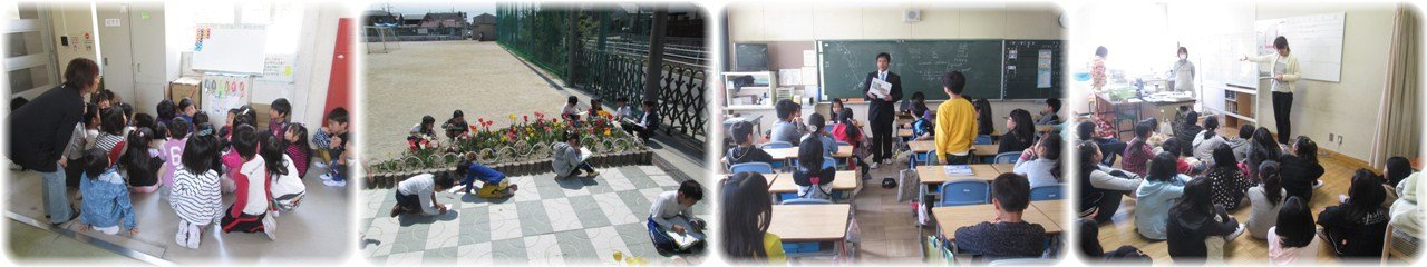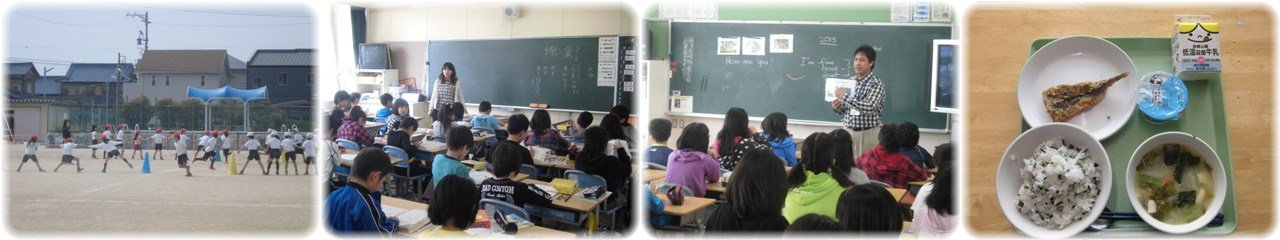 4年生の体育で「しゃくとり虫リレー」を行っていました。2つのチームに分かれて相手チームの最後尾の子を回ってリレーします。同じチームの子は手をつなぎ,相手チームの子が来ると腕を伸ばして距離を長くし,自分のチームの子のときは腕を縮めて距離を短くします。その動きはまさにしゃくとり虫でした。チームで力を合わせてリレーを楽しむ姿が見られました。(1枚目)4年生の国語で漢字練習を行っていました。「特」という新出漢字を練習した後,特を使った熟語として「特急」の意味を国語辞典を用いて調べていました。新出漢字を覚えるだけでなく,漢字から熟語,熟語から短文へとつなげる取組を大切にしています。(2枚目)6年生の外国語(英語)活動です。英語指導員のダニエル先生がピクチャーカードを使って母国であるフィリピンの紹介を英語を交えて行っていました。大きなマンゴーや車の写真やバナナが15円という話に子どもたちは興味津々の様子でした。(3枚目)毎月第3木曜日・金曜日の給食は「みえ地物一番給食の日」メニューが登場します。今日のメニューは「わかめごはん・牛乳・かますの香味揚げ・あおさのみそ汁・ヨーグルト」で,「牛乳・かます・煮干粉・豆腐・あおさ・ヨーグルト・まこもだけ・小松菜・米」が三重県産でした。(4枚目) |