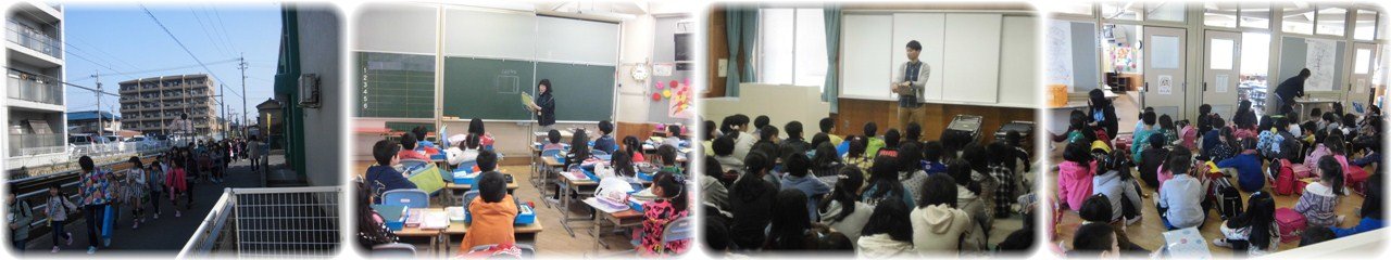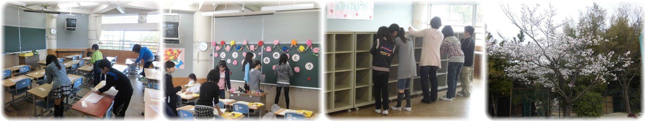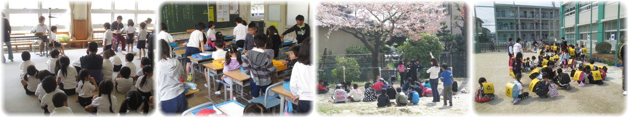 今日は3年生以下の発育測定です。1年生は,自分の名前をはっきりと言ってから座高,体重,身長の測定を受けることができました。また,廊下の壁には,上靴がきれいにそろえて並べられていました。こうして,マナーやルールを学び,身につけていきます。(1枚目)3年生が身の回りが学習するのにふさわしい状態になっているのか,みんなで点検していました。赤白帽子など持ち物に名前が書かれているかや10の準備がそろっているかなどを点検しました。そして,机の引き出しの中を整頓して,物と心を整えました。(2枚目)4年生が青葉の出始めたサクラを観察していました。地面に座ってスケッチをしている子どもの髪や肩にサクラノ花びらがひらひらと舞い落ちていました。時間の終わりにそのサクラノ木の下で学級写真を撮りました。(3枚目)1年生は,今日からグループ下校。同じ方向に帰る子どもがグループになって下校します。通学にはおうちの方が何人も迎えに来てくださっていました。しばらくの間,職員が途中まで引率して安全の確保に努めますが,おうちの方の助けがあるととてもありがたいです。(4枚目) |