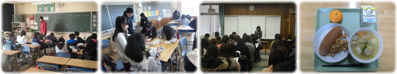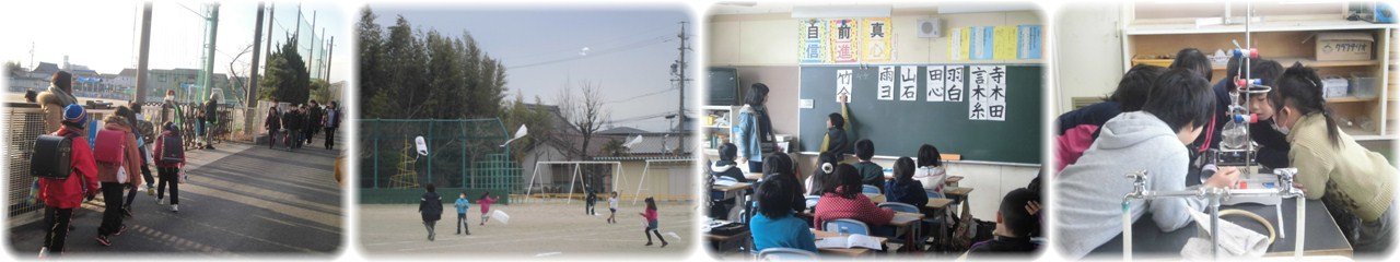 4年生の算数科は重点単元「小数のわり算」に入っています。指導者を3名体制にし3つのグループに分けて少人数授業を行っています。7.2÷3の筆算の仕方を学習していて,特に答えの小数点をつけ忘れないように書く順番についてみんなで確認していました。(1枚目)5年生の理科でふりこを使った実験を行っていました。ふりこの長さ,ふりこにつけるおもりの重さ,ふりこの振れ幅の3つの条件のもとで比較実験を行い,ふりこが往復する時間がどんな条件のときに変化するかを確かめました。(2枚目)4月に入学してくる児童の保護者説明会と物品販売を行いました。民生委員・児童委員及び主任児童委員の紹介,PTA活動の説明の後,入学までの準備や諸注意,保健に関するお知らせ,給食について等,それぞれ担当から説明を行いました。入学までにしっかり準備を整えて,元気いっぱいに入学式に臨んでくれることを楽しみにしています。(3枚目)今日の給食も「みえ地物一番給食の日」メニューで,「小型玄米パン・牛乳・みかん・みえっこちゃんこ鍋・小魚入りフライビーンズ」でした。「牛乳・削節・大豆・かちり・みかん・にんじん・大根・エリンギ・まこもたけ・白菜・ねぎ」が三重県産でした。(4枚目) |