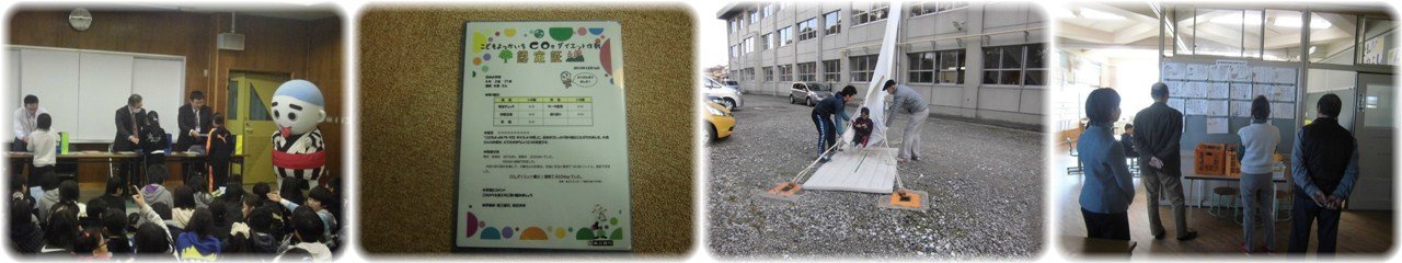 第三銀行の方々が来校し,4年生が10月に取り組んだ「こどもよっかいちCO2ダイエット作戦」の結果をもとに子どもたち一人一人に認定証を手渡ししていただきました。認定証を渡された子どもたちは,いっしょに参加したこにゅうどうくんと握手をしたりこにゅうどうくんの舌を引っ張ったりしてふれあいを楽しみました。認定証には取組の結果が☆の数で示され,「とてもすばらしいエコな家庭です」という総合評価が書かれていました。またダイエットできた電気の量が石油に換算して何リットルになるかも書かれていました。今後もCO2ダイエットを意識した生活が送れるといいと思います。(1・2枚目)5年生が避難訓練の一環として救助袋降下訓練を行いました。北校舎3階から救助袋を使って避難しました。初めて経験する子どもがほとんどの中,腕を前で組み,お尻を中心にして滑るという基本の形を守って最後まで上手に滑り降りる子どもも多く見られました。(3枚目)今年度最後となる第3回学校づくり協力者会議がありました。2限目に各学級の授業参観を行った後,子どもたちの様子や学校満足度調査(学校評価)の結果について話し合いました。「話をよく聞いて,落ち着いて学習できている」,「掲示してある子どもの字がていねいに書かれている」,「ありがとうという言葉をよく聞くようになった」など,子どもたちの成長の姿をほめていただくとともに,「子どもが楽しく学校へ通えるように取組を進めてほしい」という励ましの言葉もいただきました。(4枚目) |