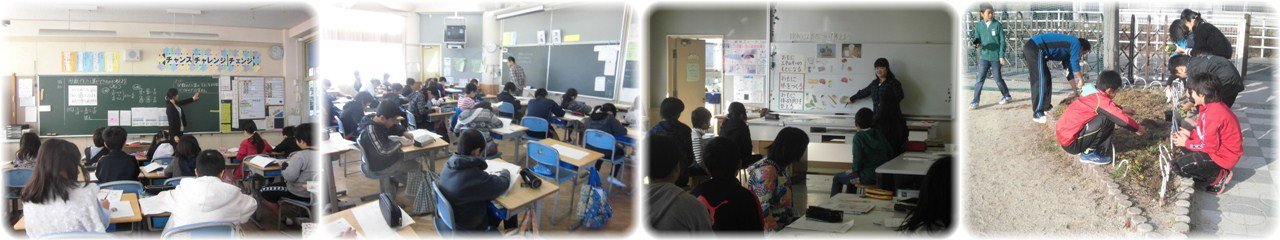 3年生の算数で分数のたし算のしかたを考えました。分数を小数に直したり,リットルますで考えたりしながら,分母はそのままで分子どうしをたし算すればいいことを学んでいきました。(1枚目)5年生が三重県教育委員会作成の「みえスタディ・チェック」の第1回目の問題にテスト形式でチャレンジしました。静かな雰囲気の中,鉛筆の音が教室に響いていました。今月末28日には2年生〜6年生で第2回目の国語・算数の問題に取り組みます。(2枚目)6年生の家庭科です。「1食分のこんだてについて考えよう」という課題で,ファーストフードと給食を比較して,3栄養素の食材がどれほど含まれているのかを栄養職員とともに確認し,「給食は3栄養素がバランスよく含まれている」「給食は多くの食材が使用されている」等の発見がありました。(3枚目)環境緑化委員会が朝の休み時間に西門の花壇にパンジーを植えてくれました。これから春に向けてきれいな花を咲かせ,子どもたちの登下校を見守ってくれることでしょう。(4枚目) |