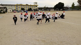 上着は脱いで、薄着でみんなで走ります!