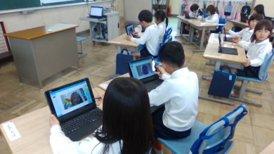 パソコンで自分の写真を撮ってお絵かきしました(1年)
