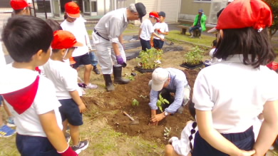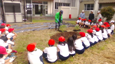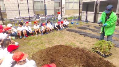 ちょうど野菜の苗を植えていた2年生は、