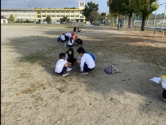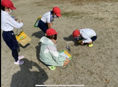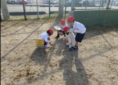 「日なたと日かげで温かさがちがう。」前回の影遊びの時の感想で子どもから出た考えをもとにどれくらい違うのかを、グループで観察しました。手ざわりと地面の温度と日なたと日かげ、朝と昼で比べました。
