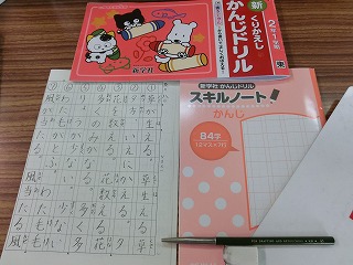 ①準備物:漢字スキルノート,漢字ドリル,見本プリント,筆記用具