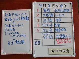 今日は、1,2限目接続が不安定だったこともあり、接続した状態での自主学習という形にしました。明日の予定を書き、社会の教科書を読んでからノートにまとめるという学習を行いました。写真を参考にしてください。