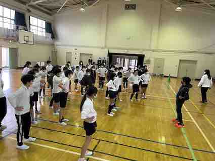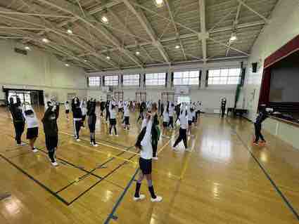 お話を聞いた後は、体育館にて、ブラジル体操などの準備運動を一緒に行いました。