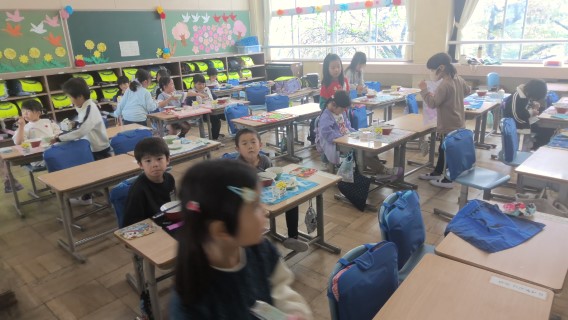 いよいよ今日から給食が始まりました。新年度最初のメニューはごはん、マーボー豆腐、もやしのナムル、お祝いゼリーでした。各クラス満面の笑顔で給食を楽しんでいました。今週も今日で終わりです。週末はいろんなことにチャレンジしてみては。では、また元気に来週を迎えましょう。