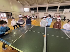黒田さん、中野さんにもお越しいただき、ルールの説明を受けた後、グループに分かれて試合をしました。SSピンポンは、ピンポン玉の中に鈴が入っていて