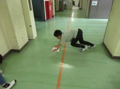中校舎1階の廊下がピカピカに光っていたそうです。