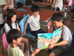 この日は、きょうだい学年の5年生が本の読み聞かせをしてくれました。みんなが楽しめるような本を選び、読み方や見せ方も考えてくれました。