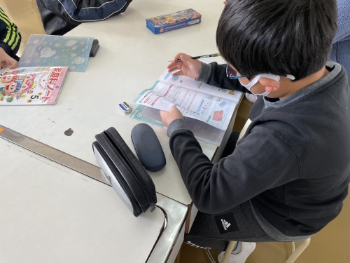 エプロンが完成しました。作って終わりではなく、家庭科ノートにエプロン作りを振り返って書いています。