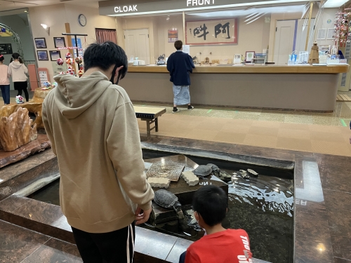 部屋長会議を終えて部屋に戻るときに、亀を発見しました!