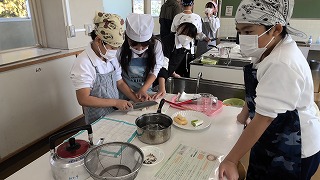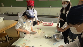 先生から聞いたことをレシピで確かめながら、協力して取り組んでいました。