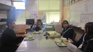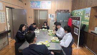 今日の給食時間に校長室でランチミーティングがおこなわれました。1日目のゲストは生徒会本部役員のみなさんでした。1年B組が学級閉鎖のため全員がそろわず残念でしたが、有意義な意見交換が行われました。ミーティングの中で、文化祭の振り返りや、学校生活を盛り上げるための取り組みについていろいろなアイデアを出してくれました。ほほえみのあふれる保々中学校をめざして生徒会のみなさんの活躍を期待していますよ。