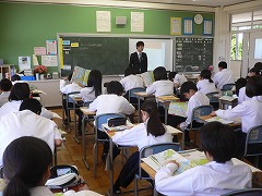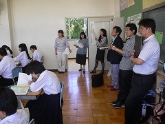 今日の2限目、1年B組社会の時間に教育実習生の特練(特別練習授業)がありました。大学の先生も来ていただき、本校の先生たちの参観も受けて、実習生が授業をしました。生徒たちも意欲的に学習する様子がうかがえました。