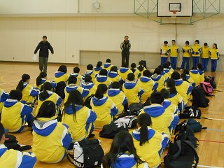 2月4日(月)、1泊2日の自然教室に出発しました。7時30分に体育館に集合し、出発式を行いました。実行委員を中心に出発式を進めていました。