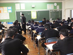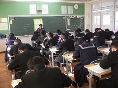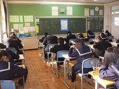 今日から3学期がスタートしました。始業式の後、2限目から6限目まで1,2年生は実力テストがありました。冬休みの勉強の成果は発揮できたでしょうか。また、3年生は明日から卒業テストが3日間続きますので、しっかり準備して臨んでほしいと思います。