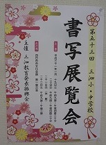 今日から1月22日(火)まで、四日市市文化会館の第1展示室で第53回三泗小中学校書写展覧会が開催されています。保々中学校からも7点の作品が展示されています。時間がある方はぜひ展覧会へお越しください。展示日程は以下の通りです。