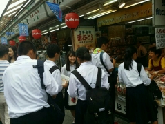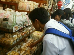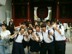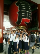 予定よりも30分近く早く浅草寺に到着しました。仲見世の見学時間を50分取ることができ、生徒たちはおみやげを見たり、雷門を見たりと楽しそうに過ごしています。