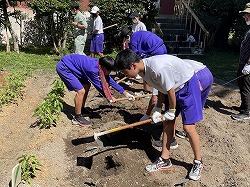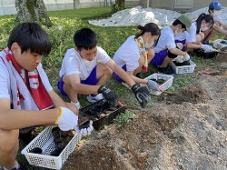 また、Dファームに枝豆を植えました。A組1班~B組6班までの12区画に分かれて、植えました。これからの成長が楽しみです。