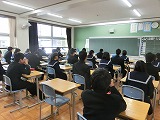 体育館が改修工事により、使用できないため教室での始業式になりました。
