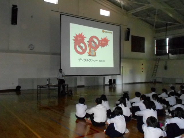 6月16日(土)、本日は第3回土曜授業、学校オープンデーでした。1・2限は教科授業でした。3限目は、eーネットキャラバンより林篤寿さんを講師にお招きして、スマホ安全教室を開催しました。デジタルタトゥーのことや、SNSの注意点などをわかりやすく説明していただきました。講演の中でフィルタリングのことも説明していただきました。今一度、ご家庭でもフィルタリングについてよろしくお願いします。わかりやすい講演をしていただき、林さん、ありがとうございました。