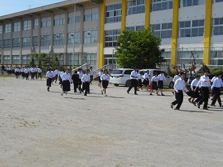 中間テストが終了し、6限目に火災を想定した避難訓練を行いました。避難開始から点呼終了までを4分以内で完了することを目標にしていましたが、避難開始から点呼完了まで4分20秒かかりました。今回は、点呼に時間がかかってしまいました。集合場所に来たら協力して点呼して、避難できているかを確認することが大切です。次回は、点呼をもっとスムーズにできるようにしましょう。次回は、9月に地震想定の避難訓練を行う予定です。