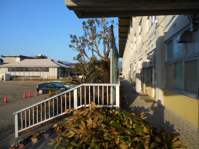 2月17日(水)、保々中学校の敷地内の数か所の樹木剪定を業者さんに行っていただきました。職員室前のタイサンボクやソテツなども剪定していただき、職員室からグランドがよく見えるようになり、室内も明るくなりました。職人さんの手際の良い作業であっという間にきれいになり、感心しました。