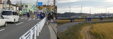 ふれあい会館の南の農道をみると、のどかな登校風景がありました。どの生徒もさわやかなあいさつをしてくれます。