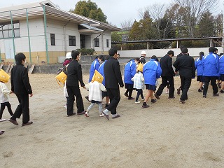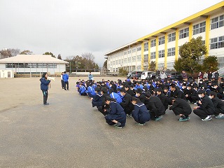 1月22日(火)、本年度最終の避難訓練を幼稚園と共同で行いました。今回は地震発生を想定して、津波警報による2次避難までを訓練しました。第1グランドに各教室からと幼稚園から1次避難し、中学生2年生が3階の視聴覚室に園児を誘導して、2次避難までを行いました。