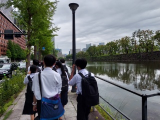 歩いて皇居に移動しました。ここで昼食をとり、散策の時間をとります。