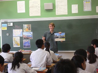 ellow:四日市市英語指導員)の先生がみえました。1学期まではアレックス先生でしたが、2学期からはアレック先生です。大変名前が似ていますが、お間違えのないようにお願いします。アレック先生は以前日本に何か月かみえたこともあり、とても日本語がお上手です。大学を卒業したてで中学校の生徒に一番年齢が近く、きっと親しみやすい先生になると思います。保々中のすべてのクラスの英語の授業でお世話になります。生徒の皆さんは楽しみにしていてくださいね。