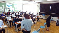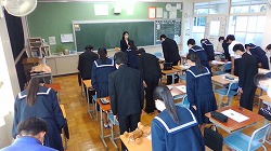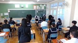 本日は講師にマナーマネジメント名古屋より篠田千晴さんを招き、マナー講座を開いていただきました。入退室の流れや、質問の受け答えなど、緊張した面持ちでみんな必死に取り組んでいました。学んだことを、受検(受験)や今後の自分の生き方の中で活かしていきましょう。