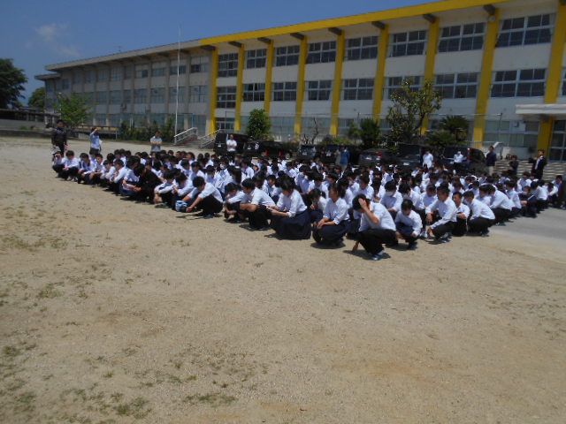 5月19日(金)、中間テスト終了後に、本年度第1回の避難訓練を行いました。今回は校舎内で火災が発生した想定で行いました。1回目ということで、整列・点呼の取り方などで課題がありました。「災害は忘れたころにやってくる」という格言もあります。そのとき、自分の命を守れるよう日頃から心がけていきましょう。
